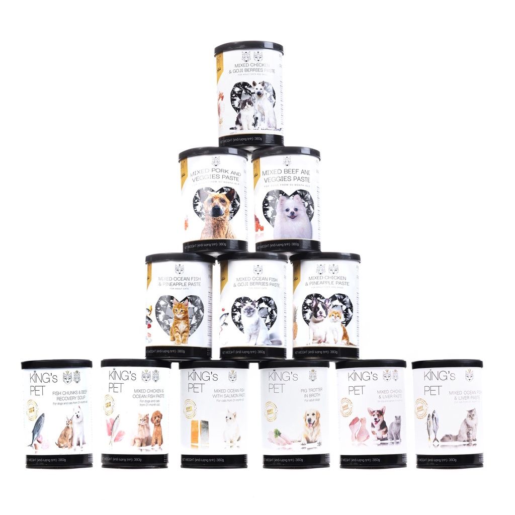 Pate lon cho Chó Mèo King's Pet by Bảo Anh 380g vị hỗn hợp Gà, Cá mix Trái Cây