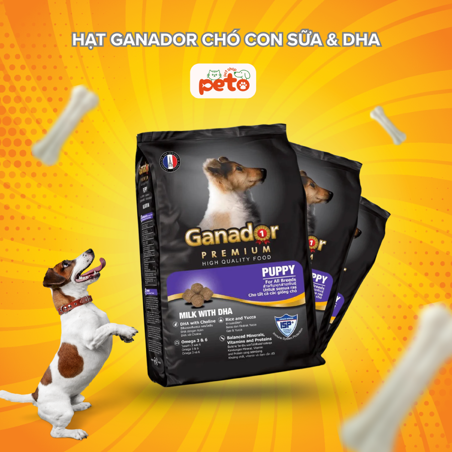 Thức ăn Hạt Khô Cho Chó Con và Chó Trưởng Thành Phát Triển Toàn Diện GANADOR túi 400gram, 3kg